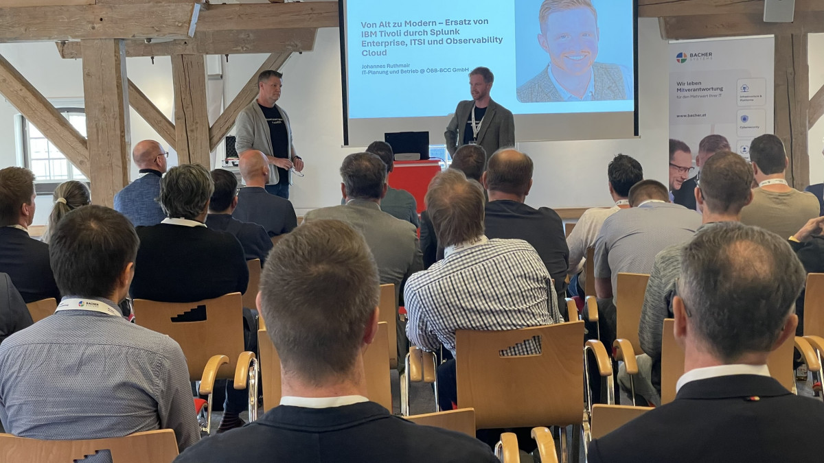14. Okt. 2025Von der Keynote "IT-Management durch die Krise" über Identity & Access Management und Infrastructure as Code bis zur Erfolgsgeschichte „Von IBM Tivoli zu Splunk“ – am 14. Oktober zeigten unsere Speaker beim Bacher Kundenforum: IT Insights & Austausch „Von Kunden für Kunden“, wie moderne IT heute funktioniert und morgen wirkt.